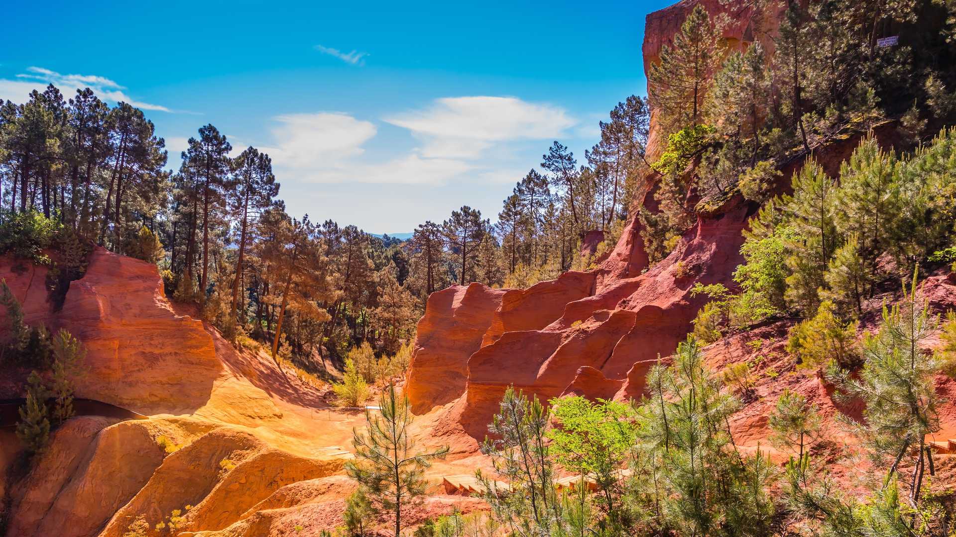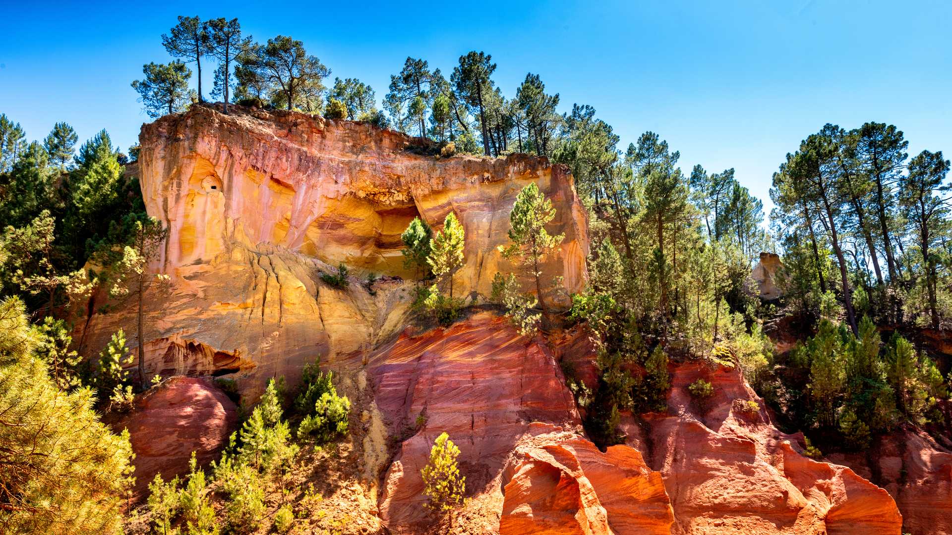 Die Landschaft überrascht durch ihre intensiven Farben: tiefes Rot, feuriges Orange, leuchtendes Gelb… Diese natürlichen Farbtöne kontrastieren mit dem Grün der Pinien und dem Blau des provenzalischen Himmels und schaffen eine spektakuläre Kulisse.